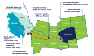 The Commission serves a total population of about 250,000 throughout its service area. This includes approximately 43,500 retail drinking water service accounts and 550 fire service accounts in Springfield and Ludlow, and wholesale drinking water to the towns of Agawam, Southwick, Longmeadow and East Longmeadow. In West Springfield, Chicopee and Wilbraham the Commission also provides partial, peak demand or emergency service.