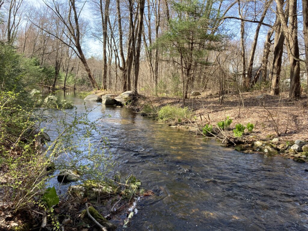 Sicard Conservation Area is covered primarily by wetlands. Jabish Brook bisects the property before crossing beneath Allen Street. There is an active beaver population here – you can find chewed trees in the wetlands, and a large dam across the brook. In March, you can see clusters of skunk cabbage blooming on the eastern side of the brook.